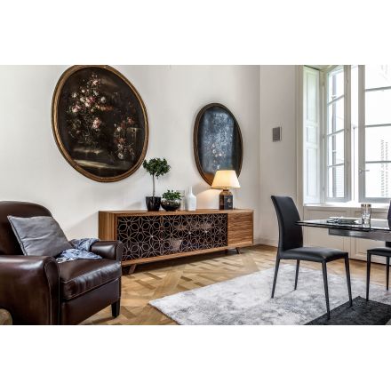 Aquí se muestra el lujo en estado puro, una imbricación de cristal y madera, decorada, enriquecida, de valor incalculable gracias a sus magníficos pomos de Swarovski.