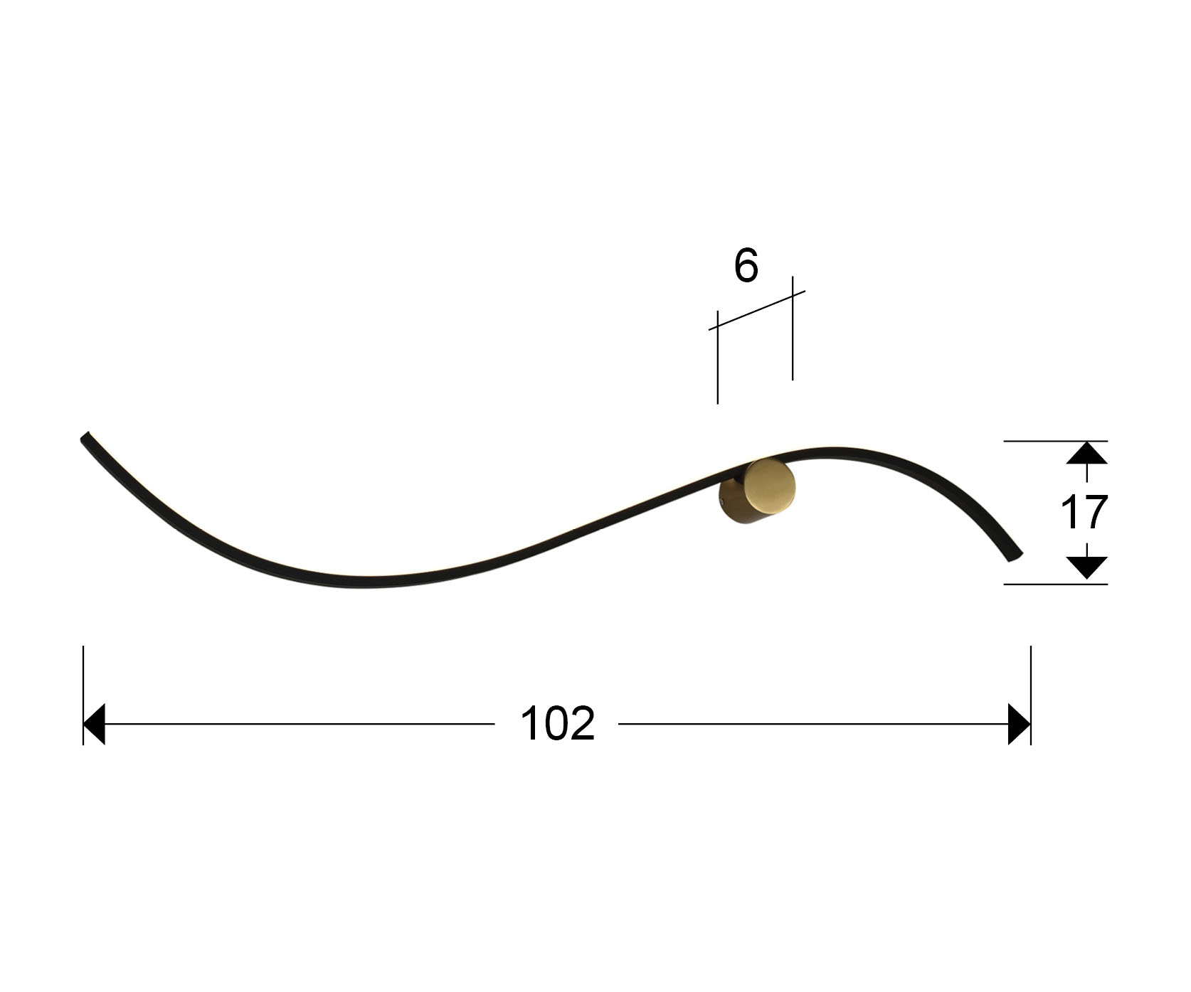 Lámpara de pared realizada en metal y aluminio, acabado negro mate y dorado. Difusor de silicona opal. 13W LED, 1.050lm, 3.000K.