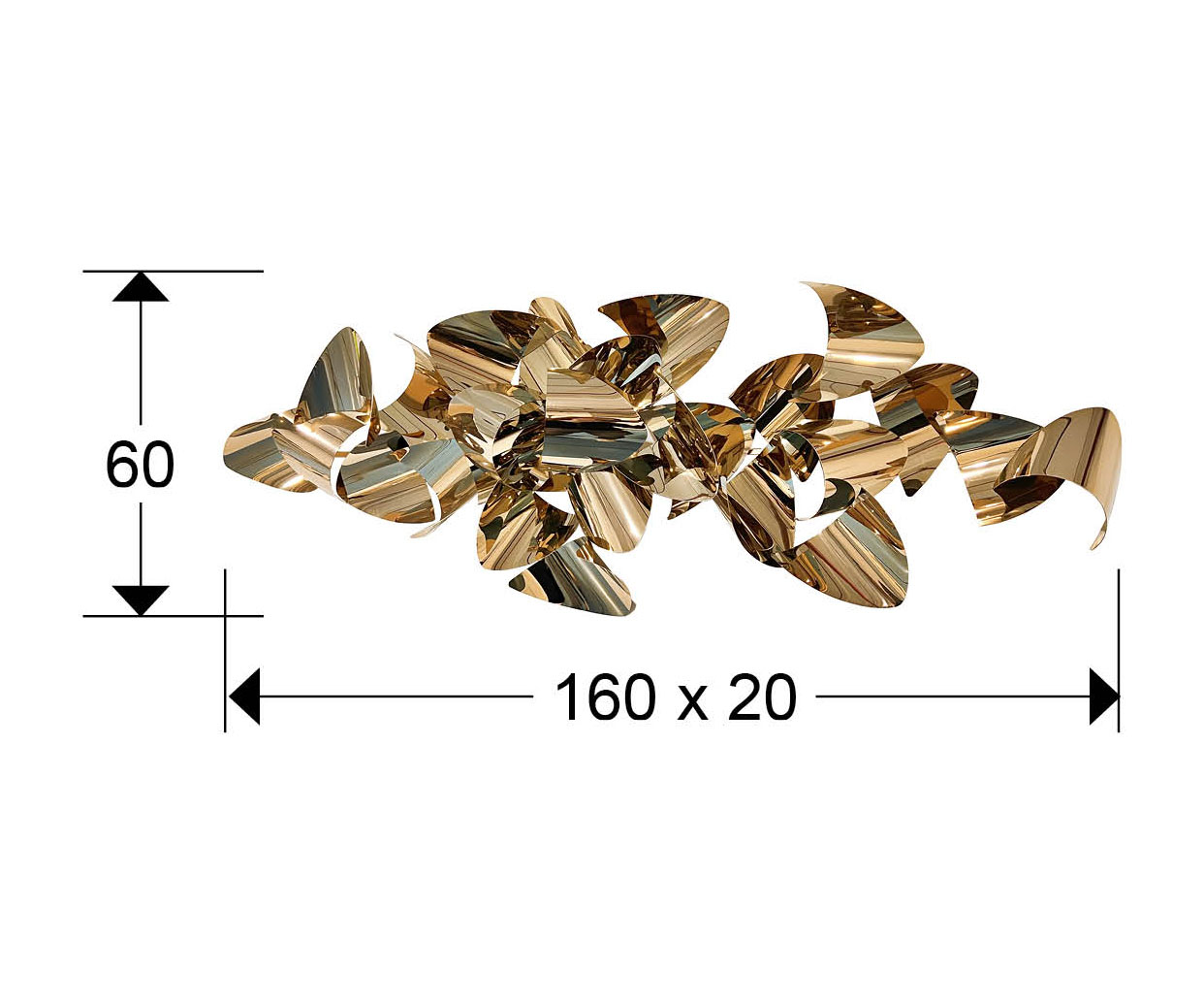 Escultura de pared realizada en plancha de acero inoxidable, composición de piezas curvadas en acabado baño de oro rosa. Preparado para colgar en posición horizontal y vertical.