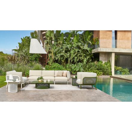 El núcleo metálico de su estructura de acero inoxidable, fruto del histórico know-how de EMU, se combina con el confort y la riqueza cromática de los tejidos de exterior, para una máxima ductilidad compositiva y expresiva en diferentes contextos, incluidos marinos. La colección se completa con mesas de centro de red metálica de diferentes formas y alturas, que ofrecen múltiples soluciones para ambientes de convivencia.