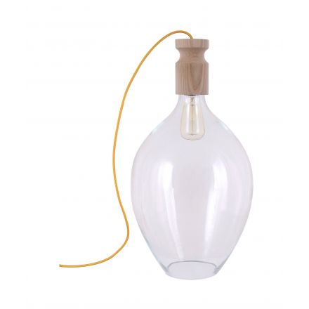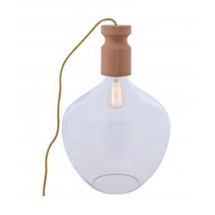 Lámpara de sobremesa Bottle en madera y cristal. Diseño Cyril Gorin