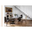 La principal característica de la mesa Firenze está en su base: está hecha con listones de nogal macizo Canaletto o roble oscuro macizo