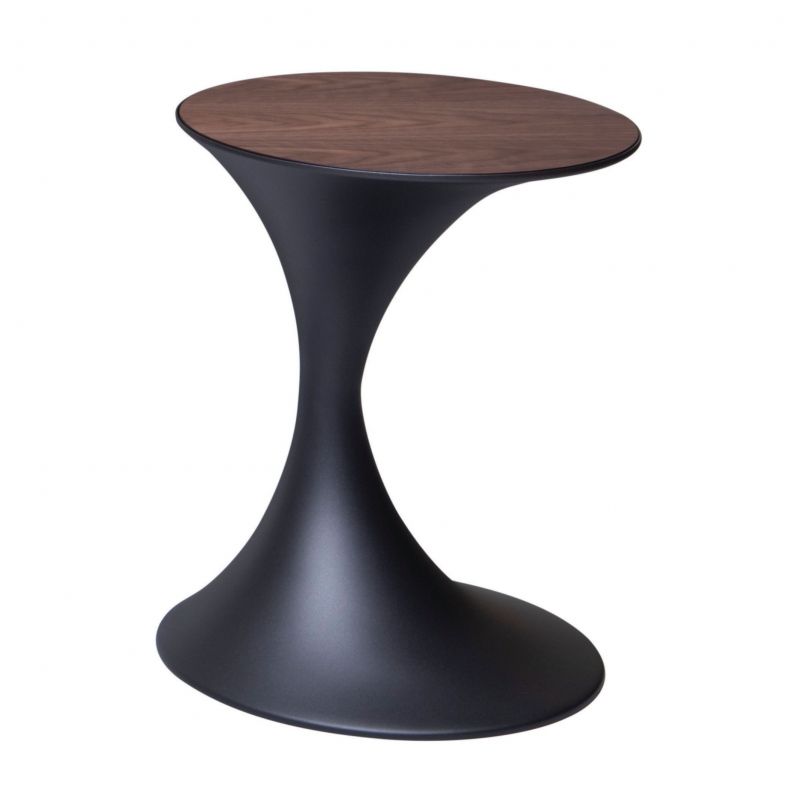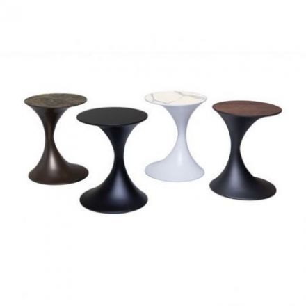 Mesa de centro con base de metal perfilada, tapa de cristal o madera