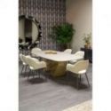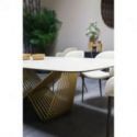 La estructura se caracteriza por una composición de tubos de metal pintado que se entrelazan para crear un diseño decidido. El tablero está disponible en varios acabados de la gama Tonin Casa: cristal, porcelana, madera y mármol. Una mesa con una fuerte identidad que encaja perfectamente con cualquier estilo de interior.