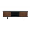 Las líneas definidas y el diseño multimaterial del mueble de TV Teo invitan a encontrar nuevos espacios gracias a la estantería central y a las dos puertas laterales con acabado en porcelana o madera