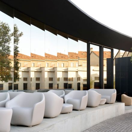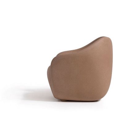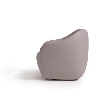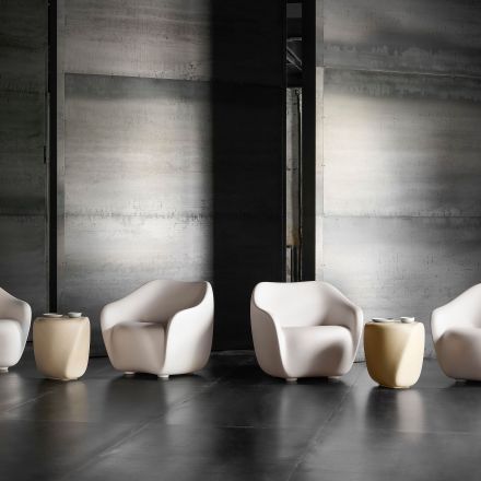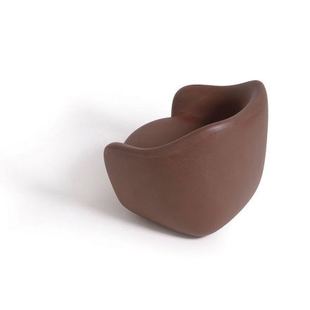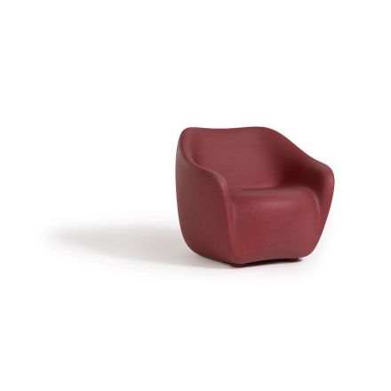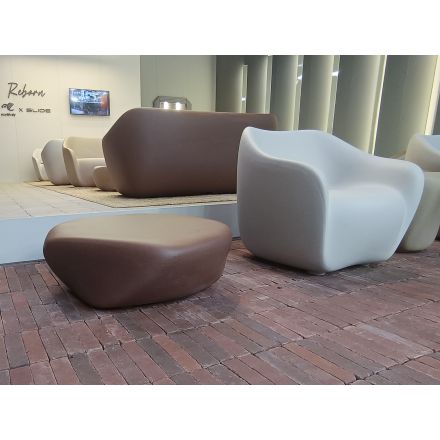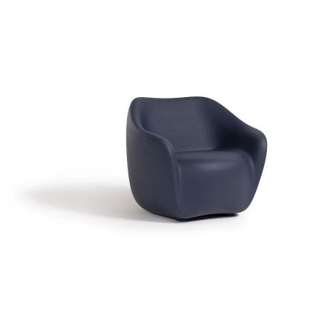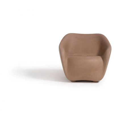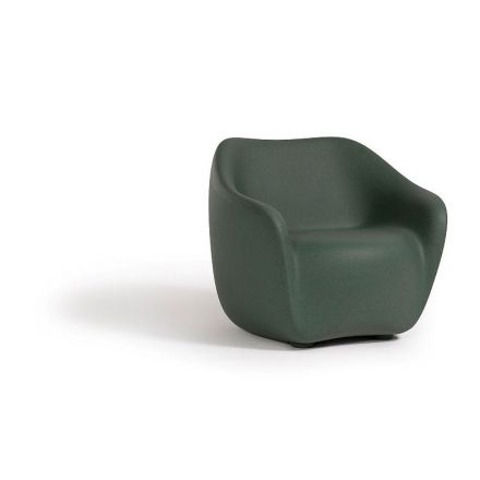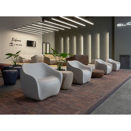Fabricada con materiales plásticos reciclados, sus formas fluidas se adaptan a cualquier espacio, con la opción de cojines para una mayor relajación.