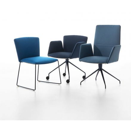 El sofisticado sistema de respuesta, situado en el cuerpo del asiento, permite ajustar automáticamente la postura en función del peso del usuario. Ideal para espacios de oficina y soft contract, donde cada usuario encuentra inmediatamente el apoyo perfecto, incluso en situaciones de reunión o espacios compartidos. Esbelto, ligero y delgado, el asiento es extremadamente elegante, distinguido y resulta adecuado para oficinas ejecutivas de alto nivel y espacios de reuniones representativos, así como para amueblar armoniosamente la oficina en casa. Vela es una familia de sillas disponible en una amplia gama de modelos: patín, basculante, 4 patas de madera, 4 radios fijos sobre ruedas o con pies autorretráctiles y 5 radios giratorios sobre ruedas con regulación de altura. En los asientos de conferencia y ejecutivo, el reposabrazos puede ser tapizado o de aluminio, en el mismo acabado que la base.