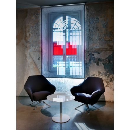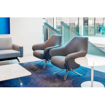 La innovadora combinación de inclinación del asiento y la característica libertad de movimiento, con retorno automático a la posición, hizo que el sillón fuera perfecto para descansar y conversar en su día, y lo sigue siendo hoy. Es la elección ideal tanto para el hogar -para el que fue creado- como para entornos de oficina, así como, de forma más general, para zonas de recepción, para acoger a las personas con el máximo confort y garantizar al mismo tiempo un entorno despejado y emblemático nada más levantarse. P32 es un sillón giratorio, con mecanismo de retorno automático y respaldo basculante.